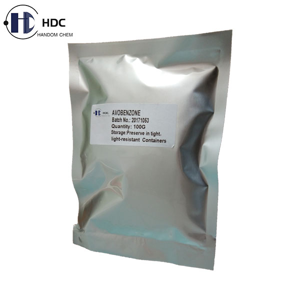 Avobenzone is a synthetic ultraviolet absorber, a good UV-A (>320nm) type ultraviolet absorber, which can block UVA in the whole band (320nm ~ 400nm), and is an efficient broad-spectrum oil-soluble UVA Light filter, compounded with other UVB sunscreens, can provide full UVA and UVB protection for the prevention of photoinduced skin cancer.