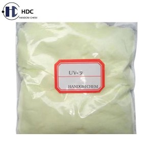 Ultraviolet absorber UV-9 is light yellow or white crystalline powder, also known as sunscreen No. 2, BP-3, suitable for a variety of plastics including polyvinyl chloride, polyvinylidene chloride, polymethyl methacrylate, unsaturated For polyester, ABS resin and cellulose resin, etc., the maximum absorption wavelength range is 280-340 nanometers, and the general dosage is 0.1-1.5%. It has good thermal stability and does not decompose at 200°C.